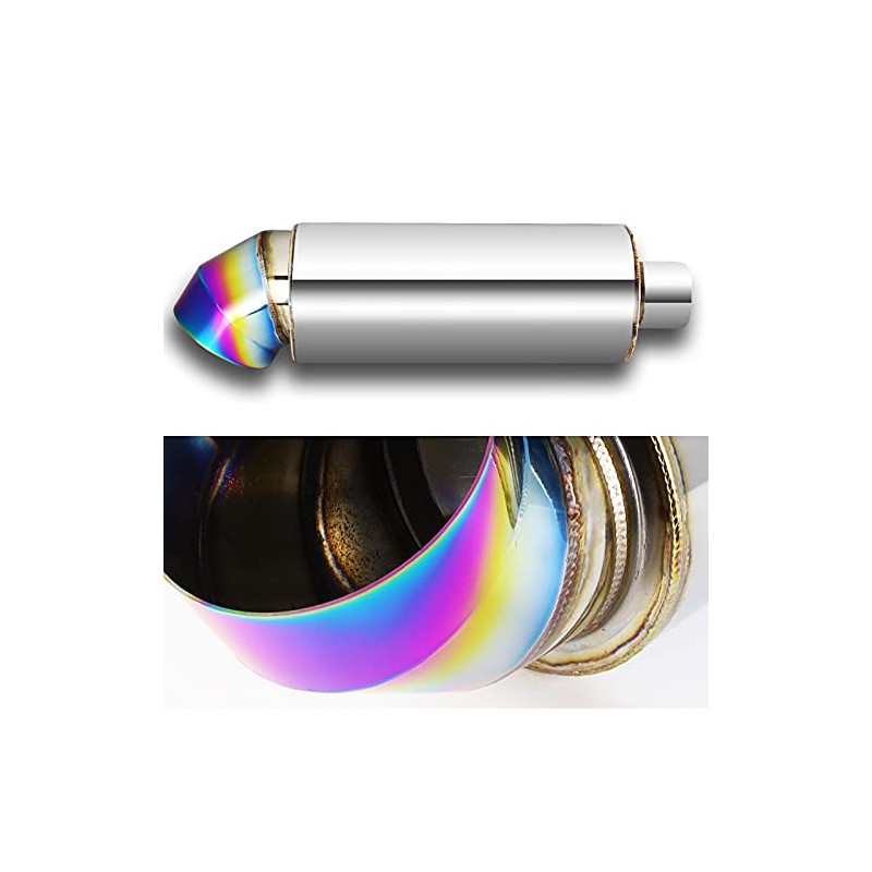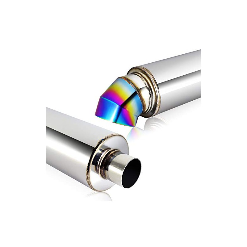 - ✅Feature: Polished Chrome stainless steel, The burnt muffler is 2.5 inch inlet, 4 inch outlet, 19 inch length just need to measure the inlet of your car before purchase.