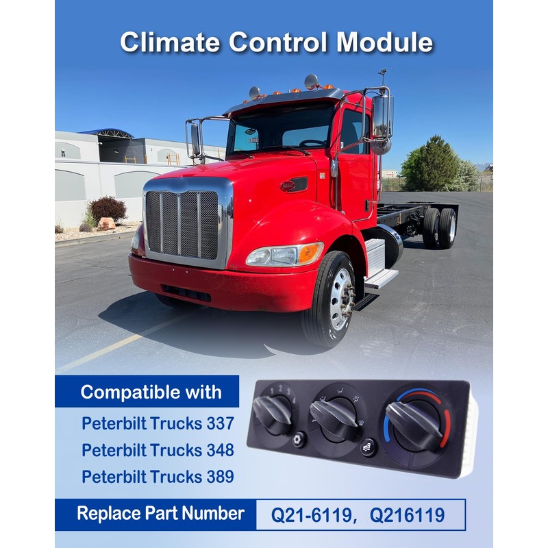 - OEM Replacement Number: Q21-6119, Q216119. Replacement for Peterbilt Trucks 337, 348, 389. The climate control panel is a perfect replacement for the original equipment. It fits exactly as the original part, ensuring easy plug-and-play installation.