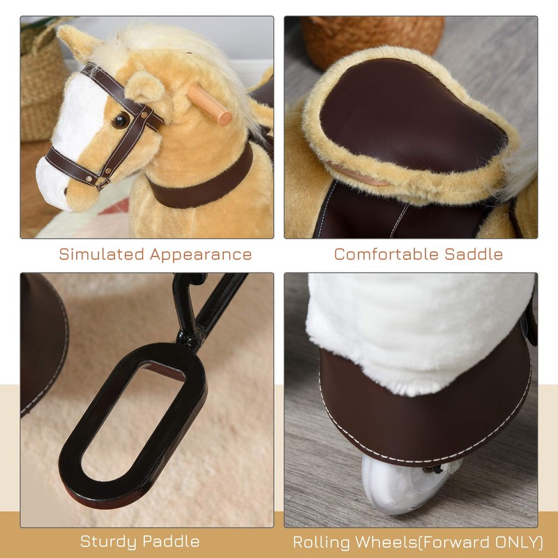 Qaba Ride-on Walking Rolling Kids Horse with Easy Rolling Wheels, Soft Huggable Body, & a Large Size for Kids 3-8 Years