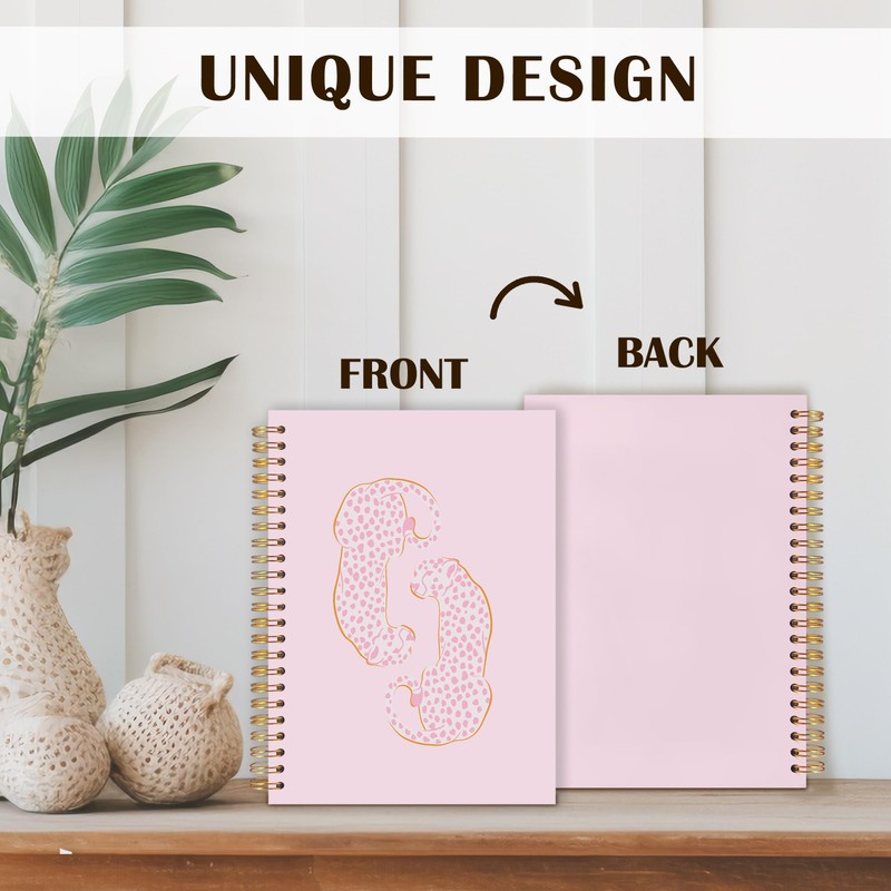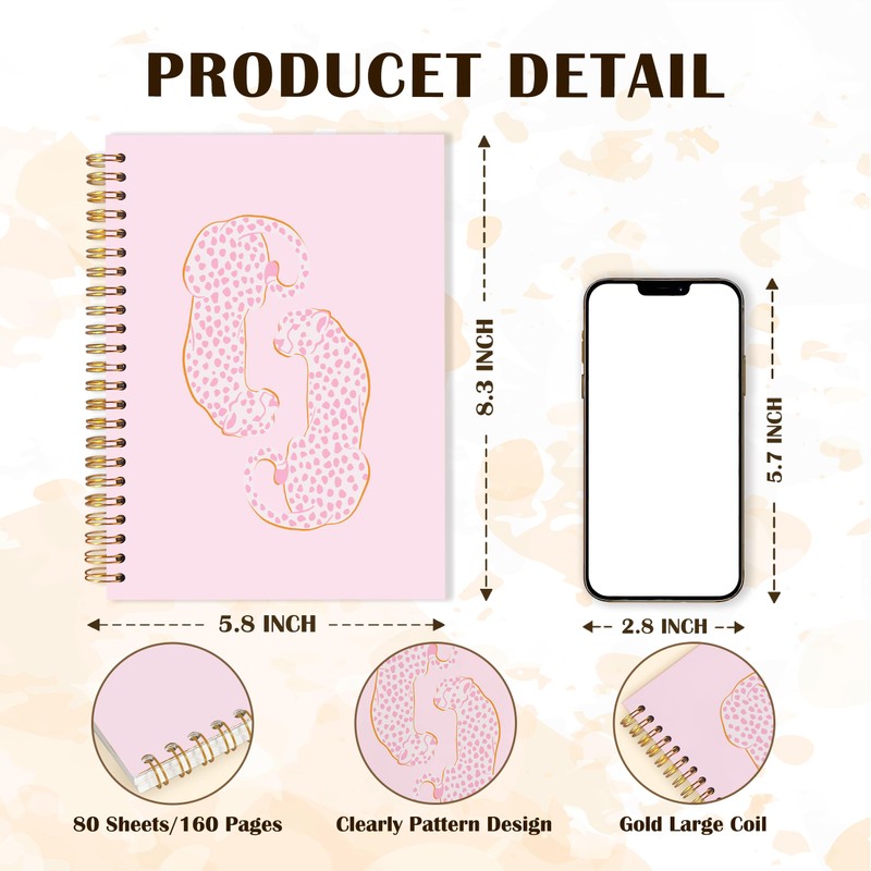 Qabliqo Minimalist Pink Leopards Spiral Notebooks, Preppy Cheetahs Journals for Writing, Trendy Leopard Print Journal, Girly Aesthetic Pink Cheetah Notebook for Note Taking, 5.5x8.3 Inch