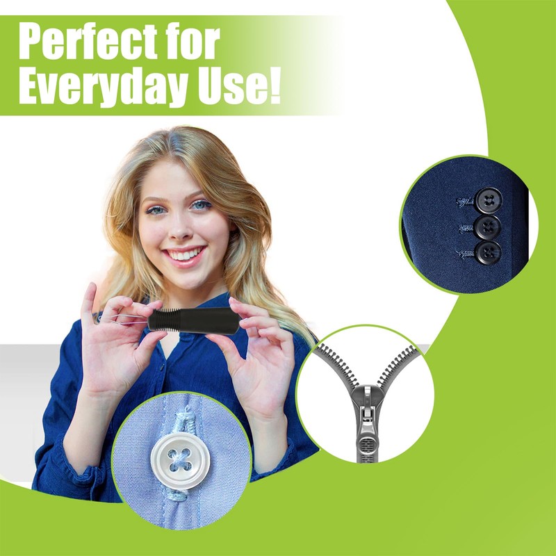 3. The handle of the zip puller is textured to provide a comfortable and non-slip grip. With this button hook, you can easily and conveniently close buttons or zips during operation.