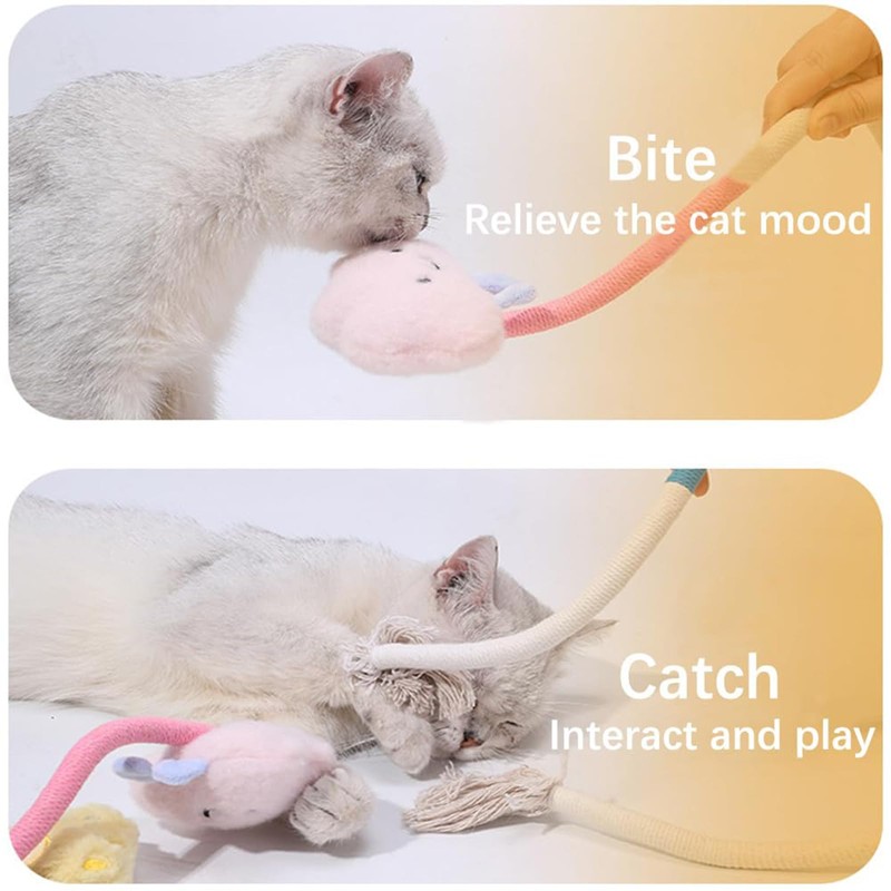 3. This cat teething rope combines different stimuli such as cotton ropes and movable cat swirls to awaken the senses of cats. Cat bite rope is suitable as a replacement for cat fishing to train kittens' hunting instinct.