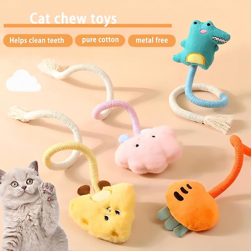 - Value set: you will receive 3 toy teething ropes for cats, including pink clouds, green dinosaurs and orange carrots. Our toy teething rope for cats offers the perfect activity for curious and playful cats. It contains natural marigold seeds that magically attract cats and promote their natural play behaviour - ideal for loners.