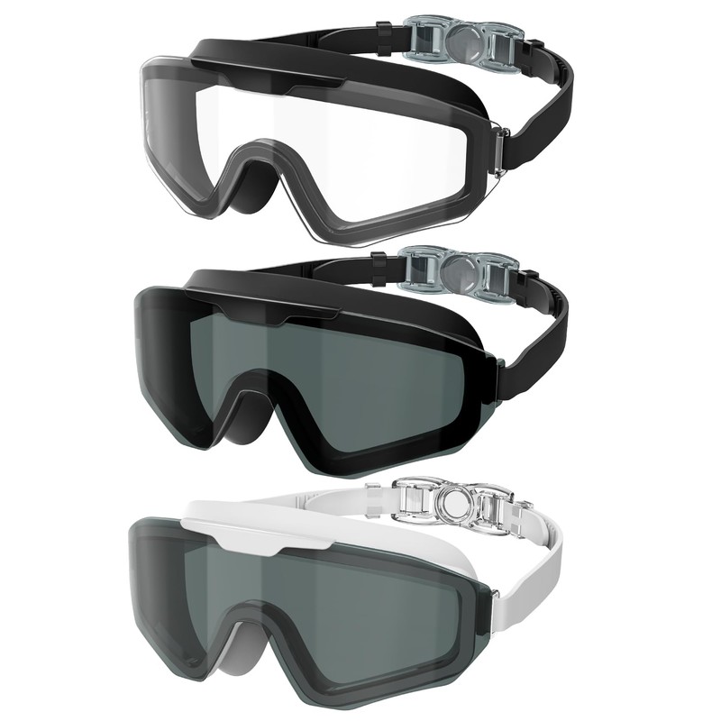 QALLY Swim Goggles for-Men-Women-Adult Swimming Goggles-Goggles for Men:Anti-Fog No Leaking UV400 Protection Wide View 3 Pack