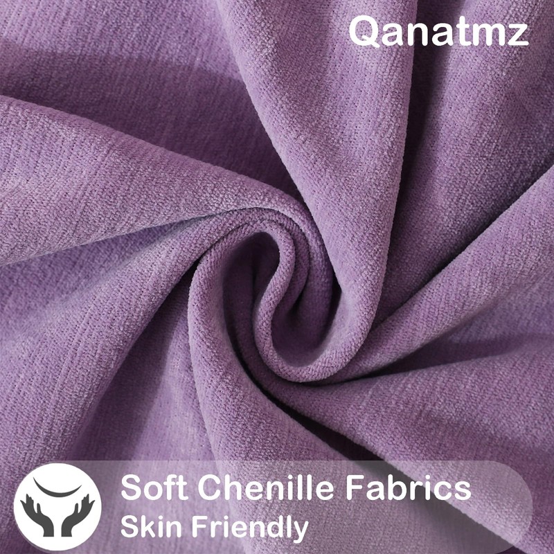 Qanatmz Lavender Cozy Soft Throw Pillow Covers, Light Purple Decorative Chenille Square Couch Cushion Cases for Sofa Living Room Decor, Set of 2, 20 x 20 Inches