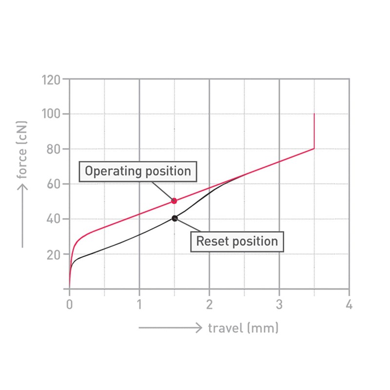 • 1.5 mm pre travel,3.5 mm total travel, 70,000,000 lifetime.
