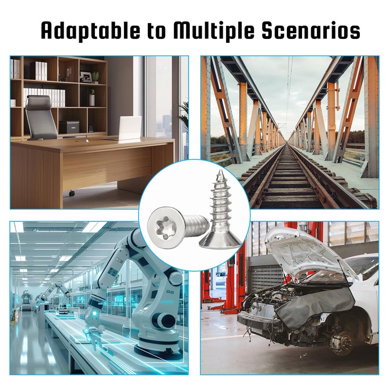 - Easy to Use:Wood screws are simply fitted into the required kit and inserted into the pre-drilled holes. During use, it is necessary to adjust the tightening force so that they are not tightened too tightly or not tightly enough, resulting in loosening or damage.