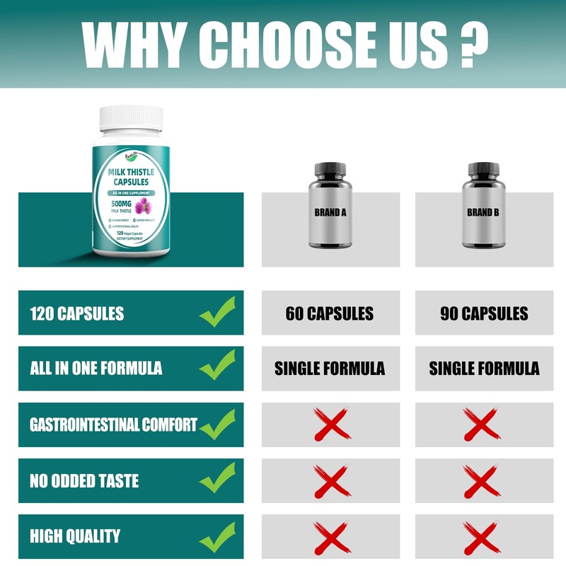 - 【Supports overall health】 Milk Thistle is a highly effective natural supplement that can help you maintain good health and improve your quality of life. Milk Thistle Capsules can boost the effectiveness of the immune system and make your body healthier. At the same time, it boosts energy levels, making you more efficient in tackling the challenges of daily life, helping your body maintain healthy daily functions, helping to reduce fatigue and leaving you feeling more energetic
