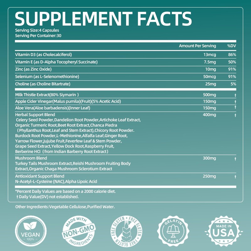 - 【Comprehensive Multi-Ingredient Formula for Everyday Health】 QANLOI Milk Thistle Capsules adopt a scientifically proportioned all-in-one high-quality ingredient formula. In addition to the main ingredient milk thistle, it also contains 18 herbs such as aloe vera, dandelion, berberine, etc. It also contains NAC and lipoic acid that can neutralize free radicals, and additional apple cider vinegar is added. This all-in-one ingredient dispenser is designed to provide comprehensive support for your daily health