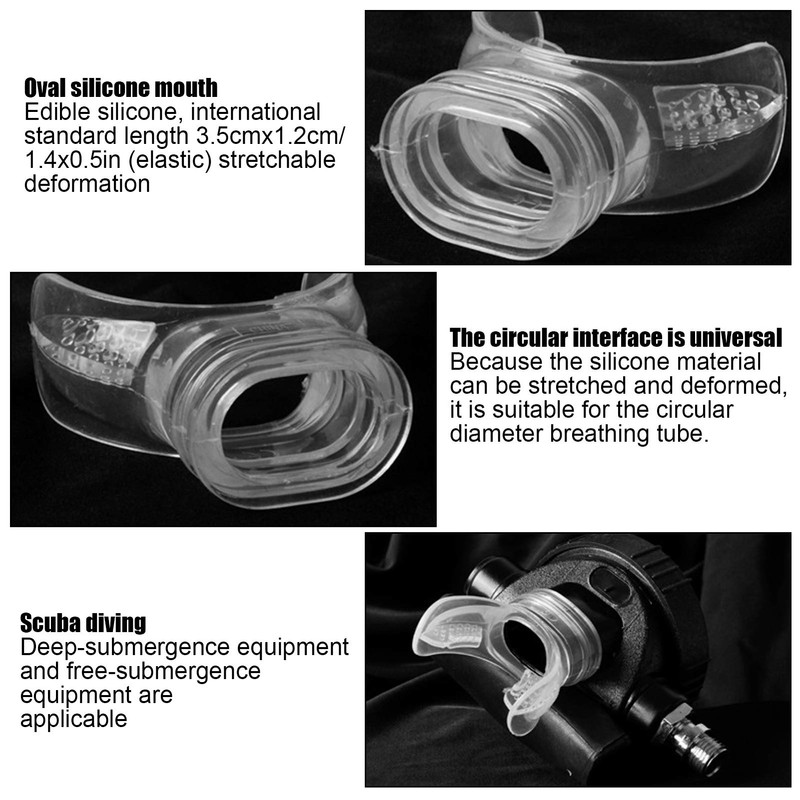 - FOOD GRADE SILICONE MATERIAL: This Diving Bite Moutiece is crafted from highquty foodgrade silicone material, ensu safety and reliability. The soft and nontoxic construction provides a comfortable and secure fit, allowing you to your diving experience without worrying about the quty of the moutiece.
