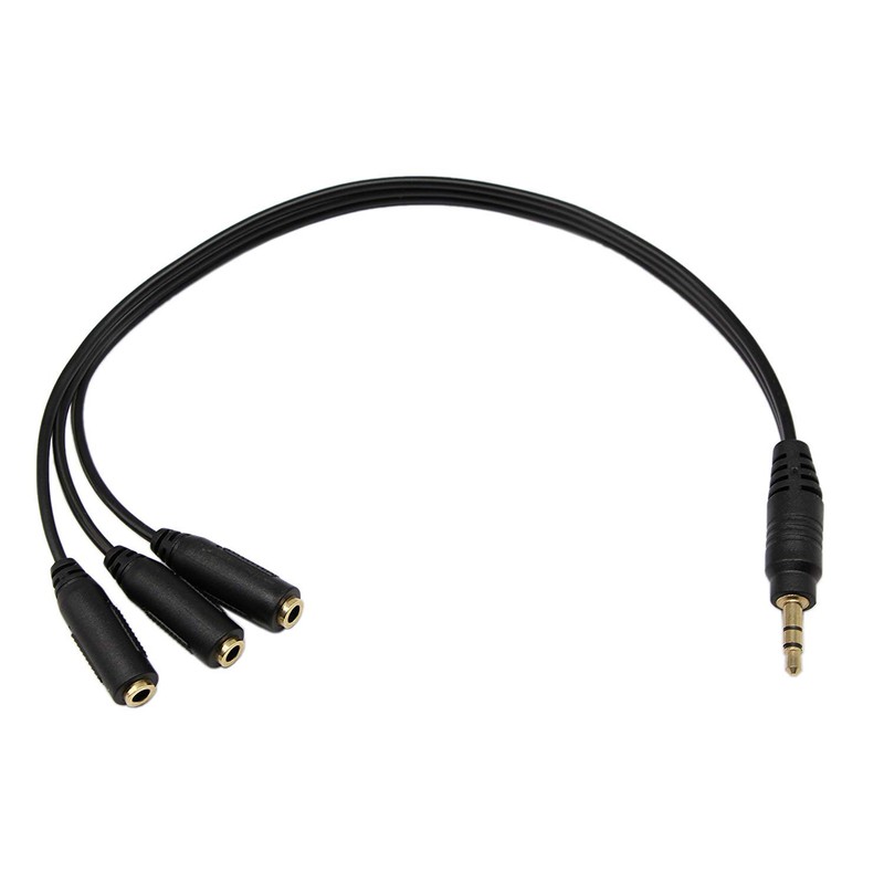 - Headphone splitter cable connect 3.5mm stereo male to triple stereo headphones