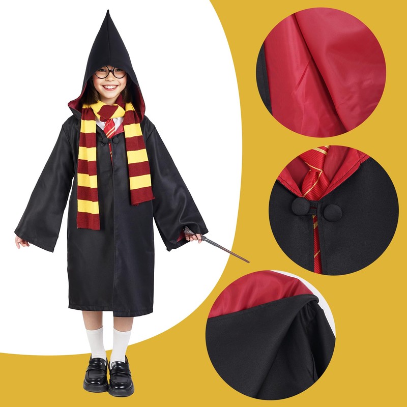 This costume is available in multiple sizes, from 3 to 15 years, and is a perfect fit for boys and girls. Whether your child loves magic or enjoys cosplay, this costume set will make them the star of any event. It's the perfect gift for young wizard fans!