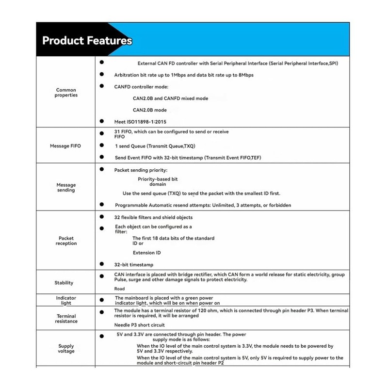 Qarmijaer Stability The CAN interface is equipped with bridge stacks, which can release the circuit and protect against damage signals such as static electricity, group pulses and surges.