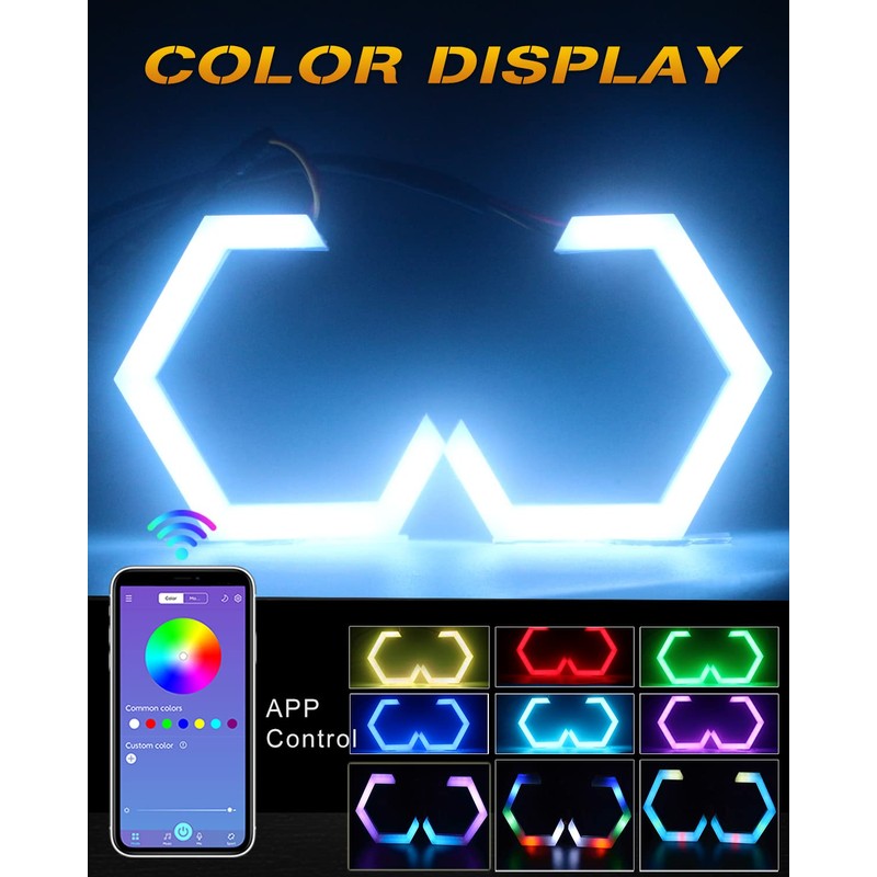 Qasim 80MM Hexagon Angel Eyes RGB APP Control Retrofit Car Motorcycle Light Decoration Driving Day Signal Light Streamer Amber Turn Signal Light 12V 24V 80MM, 2 Pack