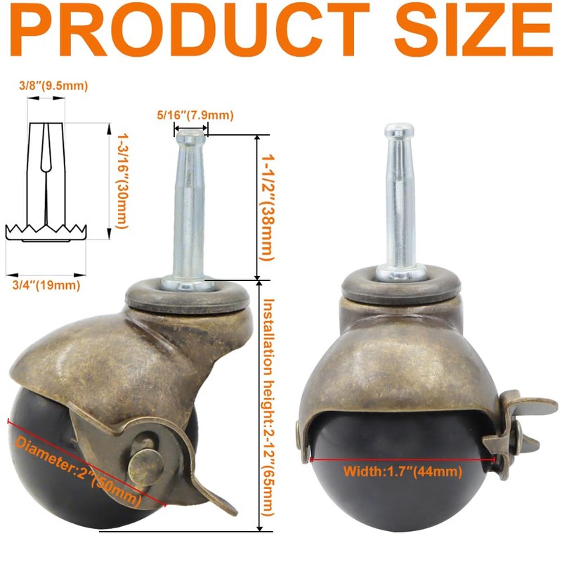 - Sturdy Load Capacity: With a load capacity of up to 50 lbs per caster and a 1.5" diameter ball, these wheels offer reliable support. The 360-degree stem (0.31" x 1.5"/8mm x 38mm) ensures effortless movement in any direction.