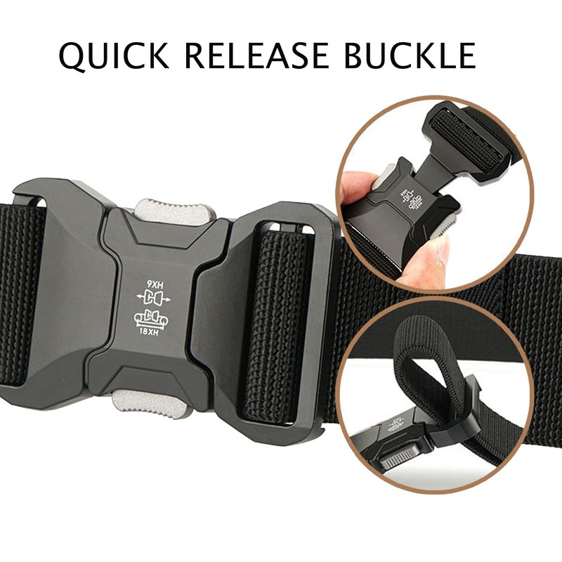 - UPGRADED QUICK RELEASE BUCKLE: This heavy duty belt features a specially designed zinc alloy buckle for one-handed operation. Ideal for emergency situations or daily use, the buckle allows for quick wear and release.