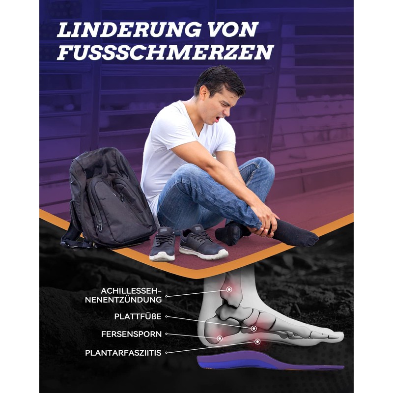 - Elastic shock absorption design: padded gel padding on the forefoot and heel can minimise the impact of the floor on the foot and reduce pressure on the sole. Make your sports, work or daily walk more comfortable with this anti-fatigue insole
