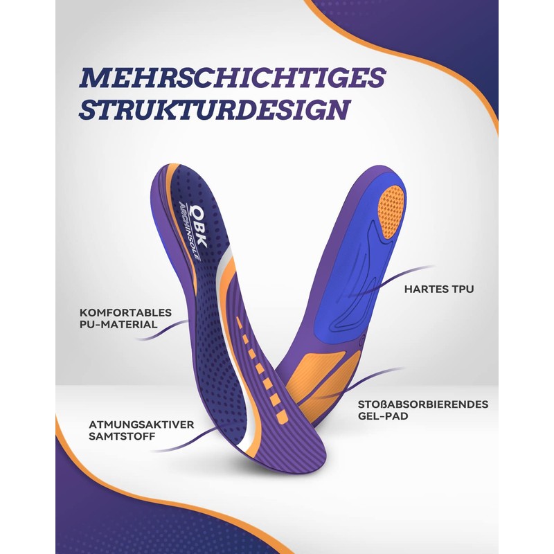 - High arch support: QBK orthopaedic insoles are a must for patients with plantar fasciitis, flat feet, bunions, arthritis, heel spurs, achilles tendonitis and excessive internal rotation. QBK specialises in providing solutions for your arch pain, heel pain, ankle pain, knee pain and more.