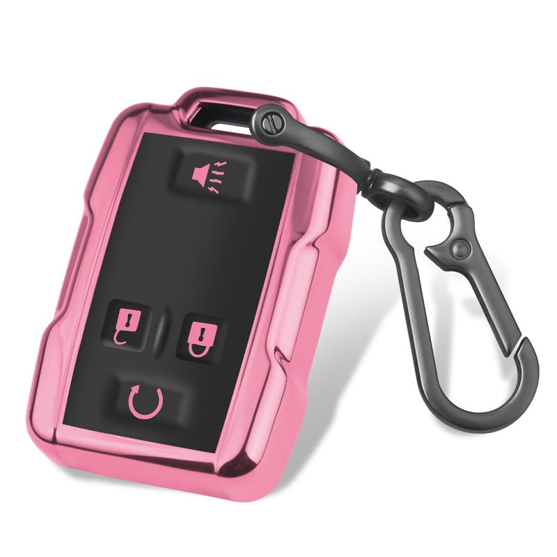QBUC for Chevy Key Fob Cover with Keychain Soft TPU Key Shell Compatible with Chevy Colorado Silverado Suburban Tahoe GMC Sierra Yukon Canyon (B:Pink)