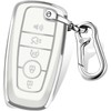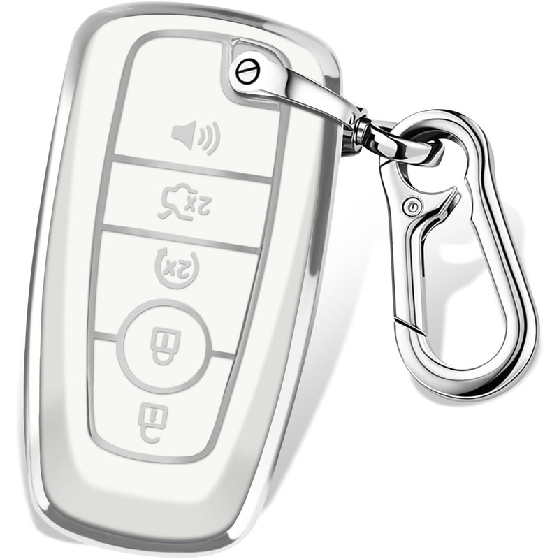 QBUC for Ford Key fob Cover with Keychain,Soft TPU Car Key Case Protector Compatible with 2017-up Ford Fusion F150 F250 F350 F450 F550 Edge Explorer Escape Mustang 3/4/5 Buttons Smart Key(White)