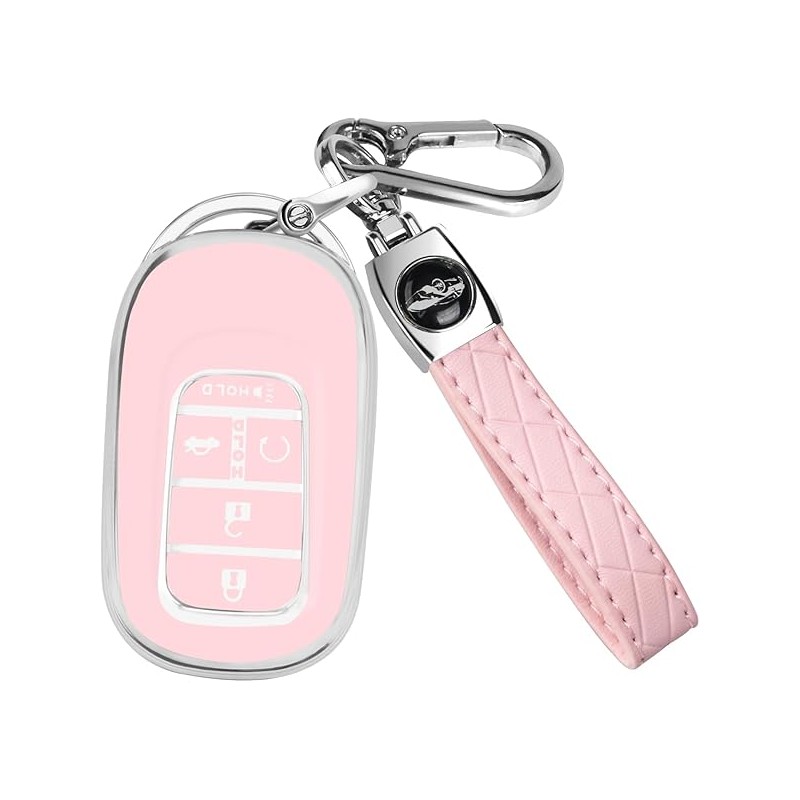 QBUC for Honda Key fob Cover with Keychain,Car Key Case Protector Compatible with 2022 2023 2024 Honda Accord Civic HR-V CR-V Pilot Smart Remote Key (Pink), Universal