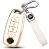 QBUC Key Fob Cover for Nissan, Car Key Fob Protector 4 Buttons Key Case Protection Compatible with 2023 2024 Pathfinder Rogue, Kicks 2025 Metal Keychain Remote Key Accessories (Gold-White)