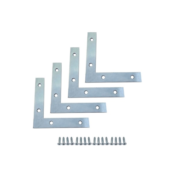 QCAA Heavy Duty Flat Corner Irons Joining Bracket for Wood Table, Chairs, Zinc Plated , 5"x5"x7/8"x0.79", Made in Taiwan, 4 Pack