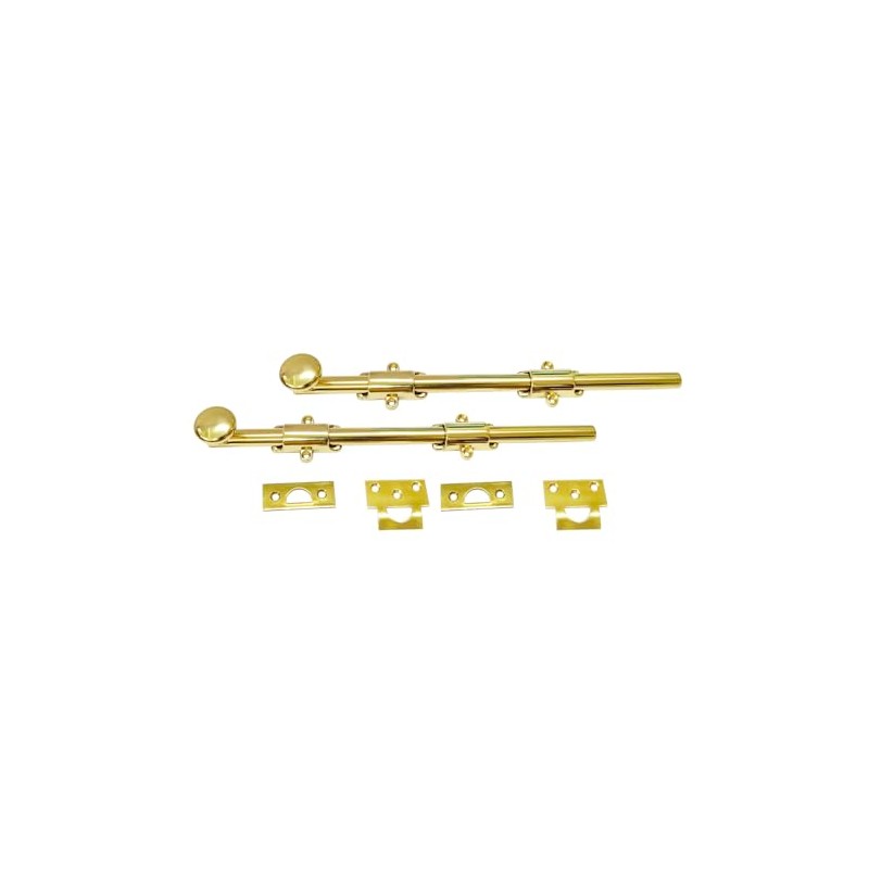 QCAA Solid Brass Dutch Door Bolt, 10", Polished Brass, Made in Taiwan, 2 Pack