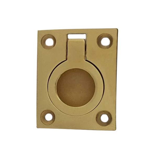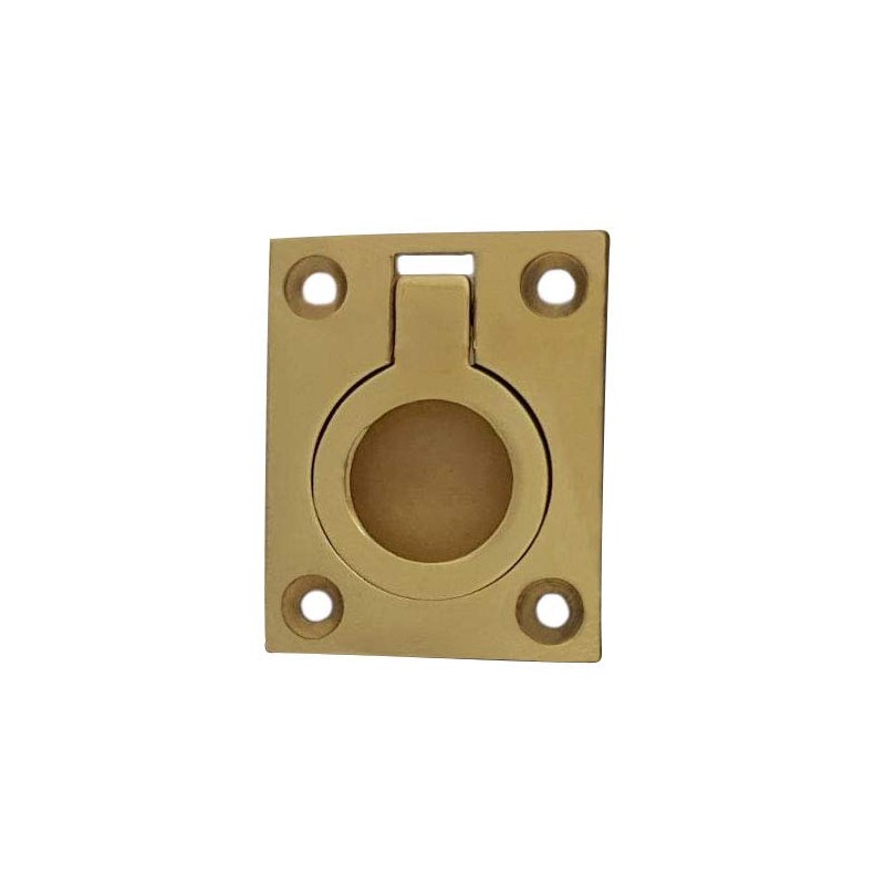 QCAA Solid Brass Flush Ring Pull, 36.5 x45 mm, Polished Brass US3, 2 Pack