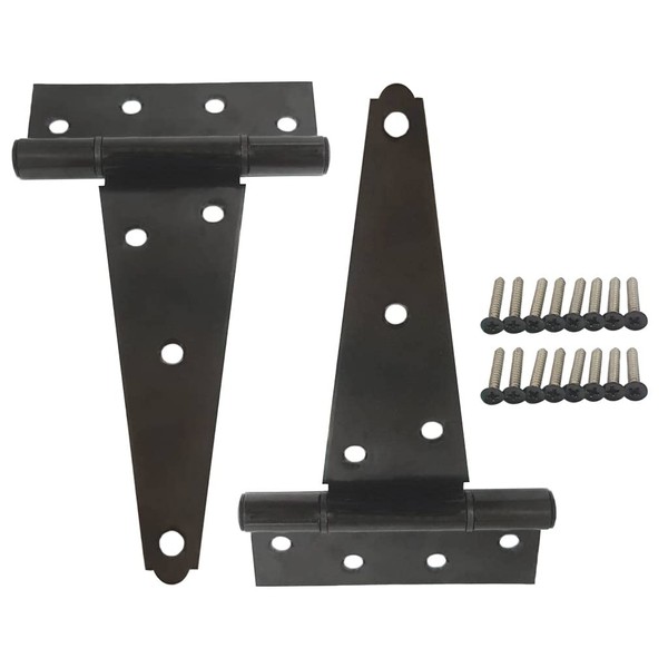 QCAA Stainless Steel Extra Heavy Tee Hinge, 6" x 2.5mm, with Stainless Screws & Hinge Pin, Black Coated, 2 Pack