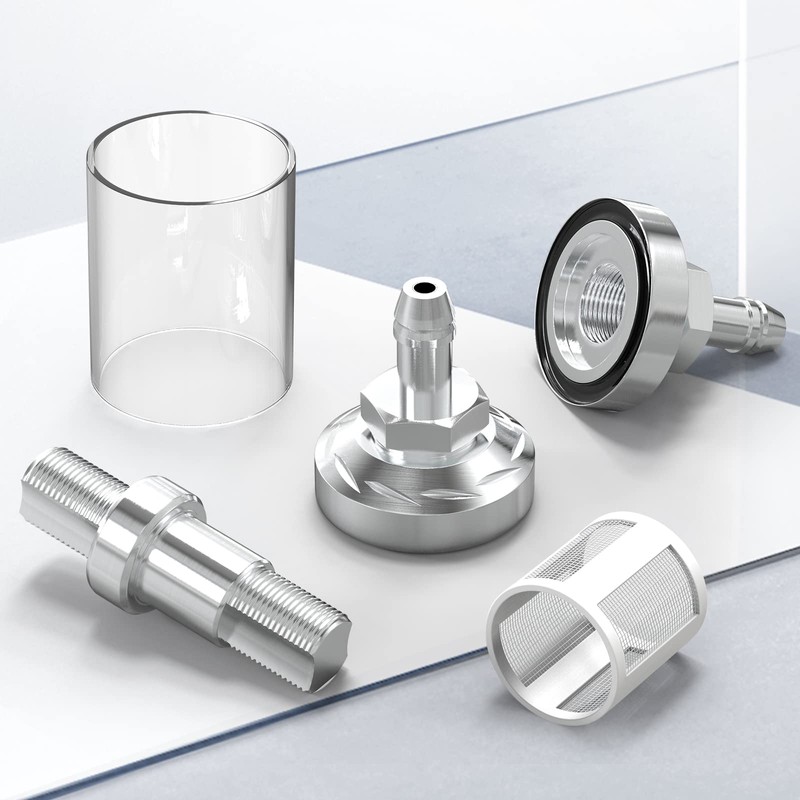 QCDENG 2pcs 5/16" Universal Gasoline Filter Inline Element, Can Disassemble and Wash Gasoline Cup Filter Element Clear Glass with Hose Clamps