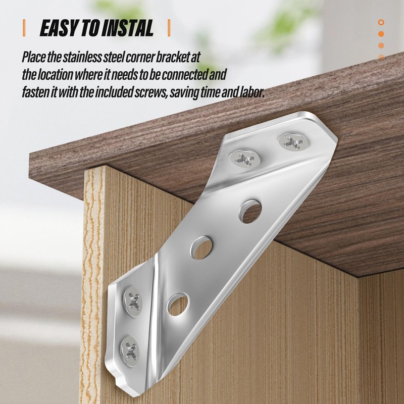 - 🛒Easy to install: Place the stainless steel corner bracket at the location where it needs to be connected and fasten it with the included screws, saving time and labor