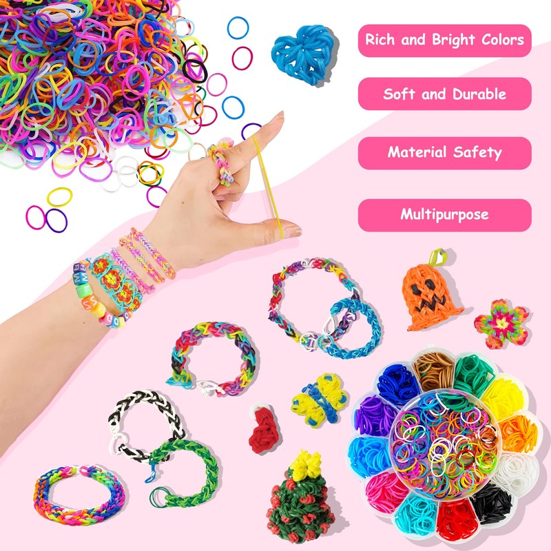 - Perfect gift: elastic colourful rubber bands kit for making jewellery, bracelets, hair accessories, necklaces, rings, key rings, tiaras, Christmas decorations, etc. It is the ideal gift for your children, family members, friends, perfect for family activities, school craft classes and party activities.