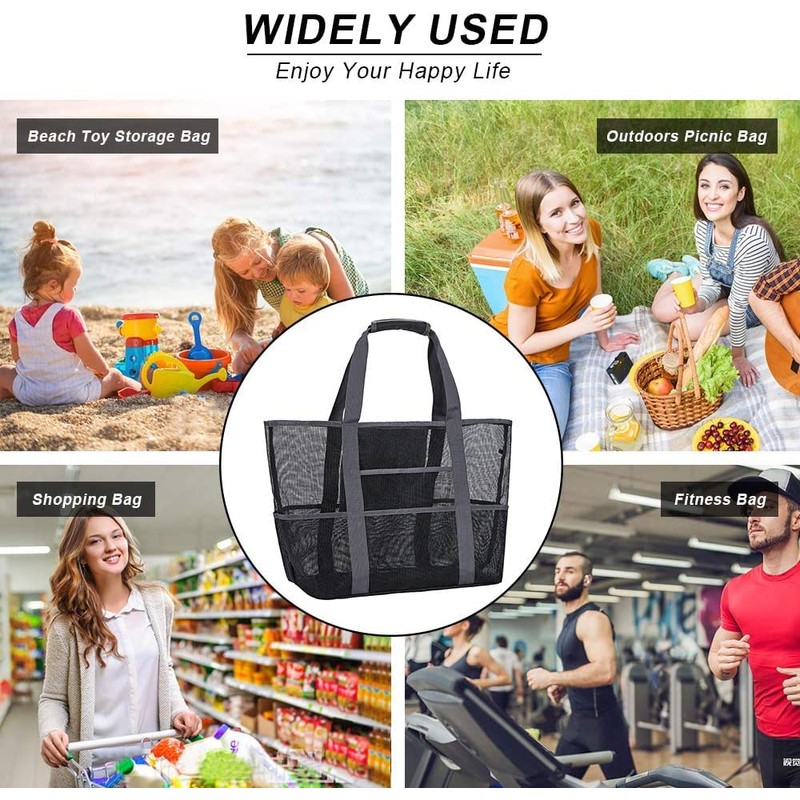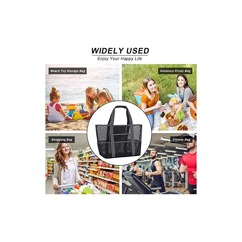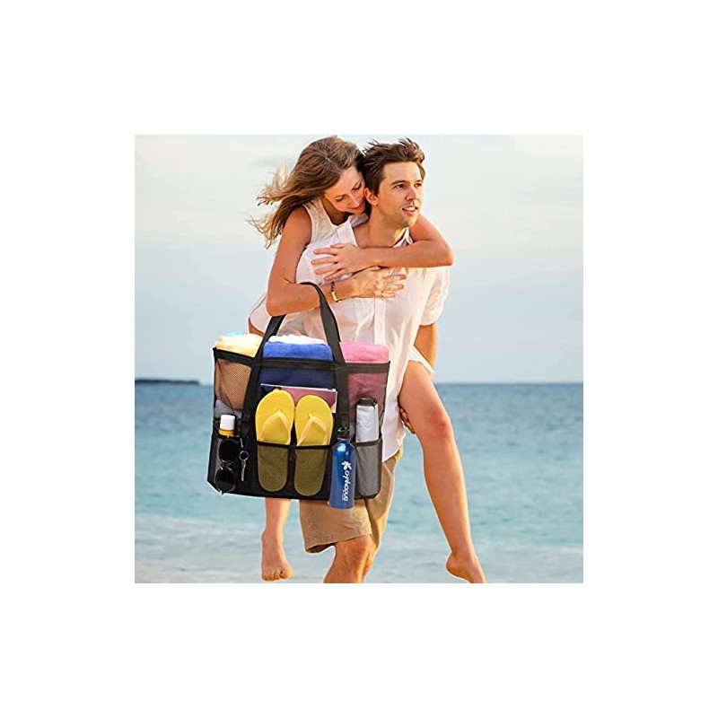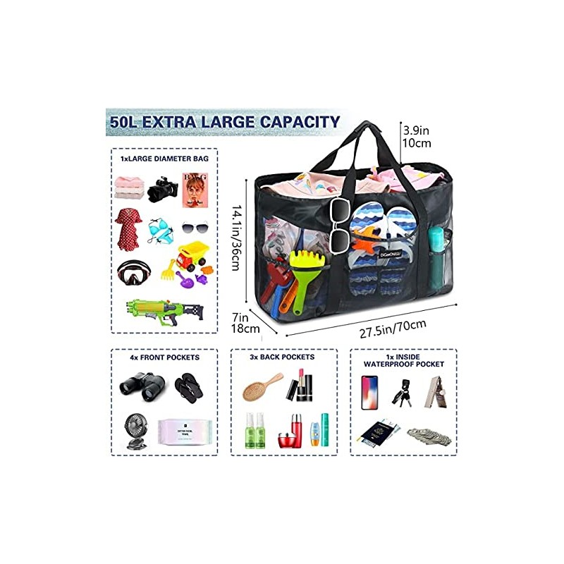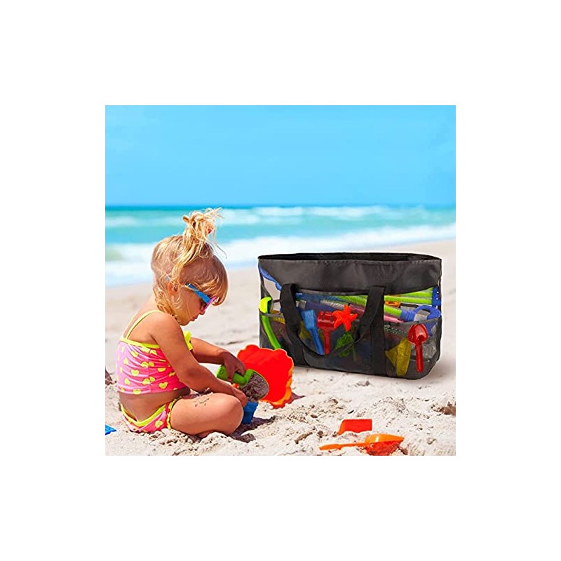 - 【Oversized Mesh Tote Bag】The 27.5"L x 14.1"H x 7"W mesh beach bag is big enough to carry 4-6 beach towels, water bottles, toys, sunblock, shoes, sunglasses and all you needs, fits many occasions such as beach trip, family days and grocery purchasing.