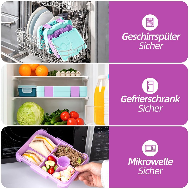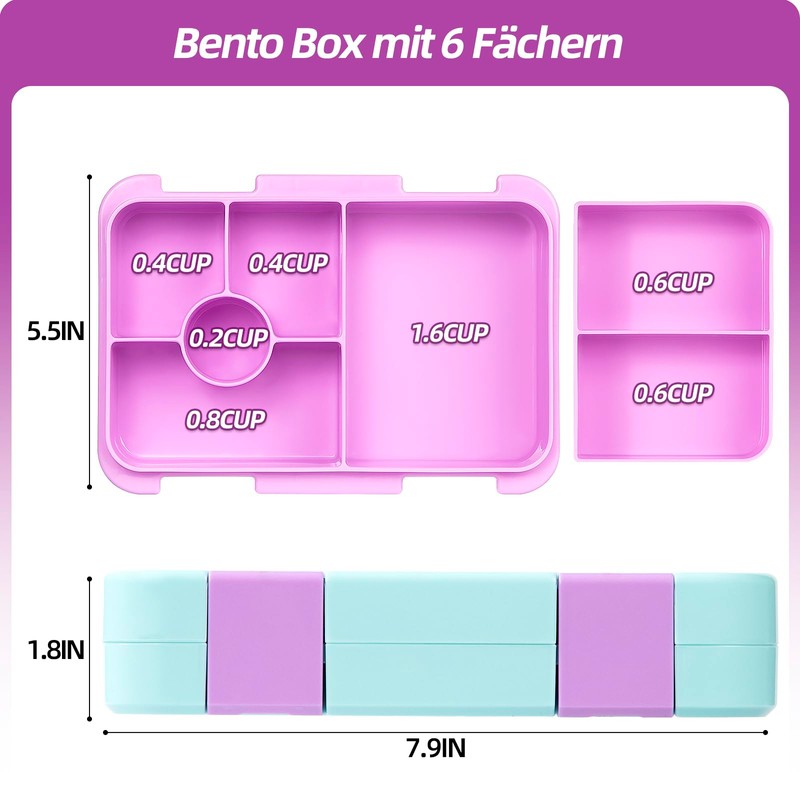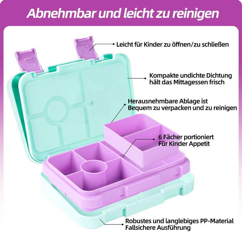 • Lunch Box for Kids (3 Years Old):The lunch box features 6 compartments that are individually sealed so you can pack fresh fruits, vegetables, sandwich, snacks and more. Let young children go to daycare, preschool nursery or primary school with a healthy and good lunch.