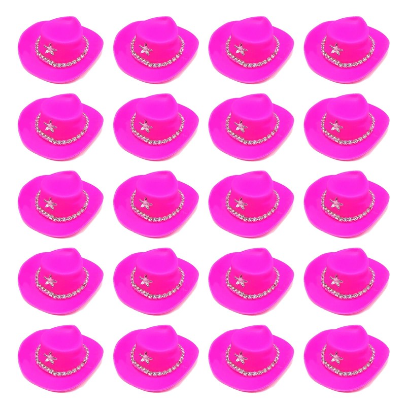 QCWN 20 Pcs Mini Cowboy Hat Pink Plastic Cowgirl Party Decorations Miniature ...