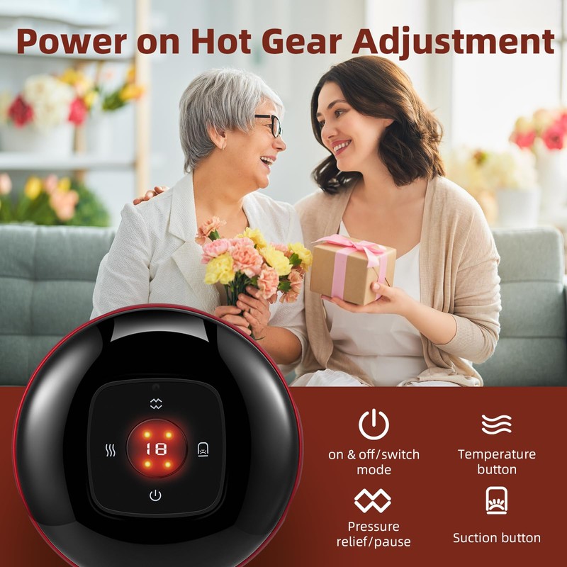 - Adjustable temperature and suction levels: Cellulite cupping machine provides a customized and comfortable cupping experience. Level 1-6: 38-40° suitable for first-time users, Level 7-9: 42-45° suitable for men or general muscle soreness relief, Level 10-12: 48-50° suitable for users with severe muscle soreness.