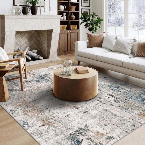 QD-Udreamy 8x10 Area Rugs - Machine Washable Area Rugs for Living Room, Soft Washable Rugs 8x10, Non-Slip Area Rug, Stain Resistant Abstract Low Pile Thin Rug
