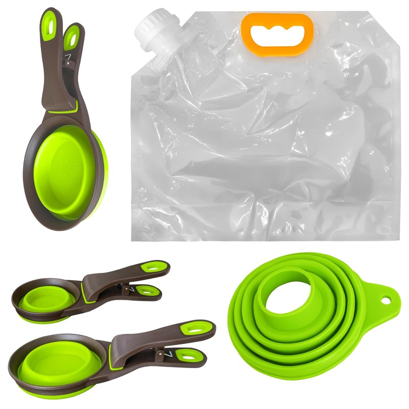 • COLLAPSIBLE DESIGN: The silicone funnel folds flat when not in use. Dog food scooper handles hook onto bag edges for easy access
