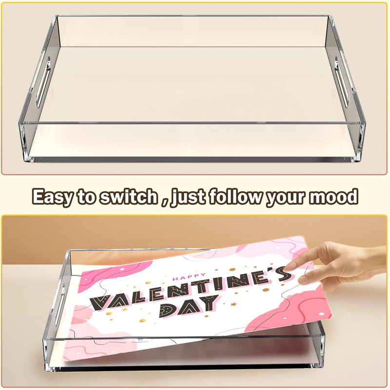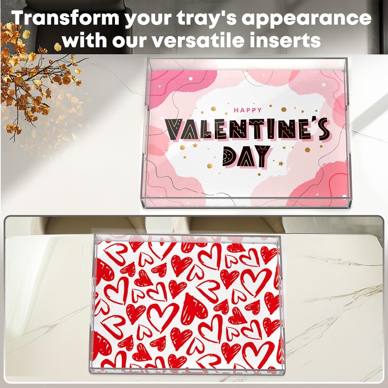 - Style Your Tray with Interchangeable Inserts – Customize your tray with interchangeable decorative inserts to match your mood or occasion. When a plain tray feels too simple, add a touch of personality! The heart-themed insert makes it a warm and thoughtful gift for weddings, anniversaries, Valentine's Day, or as a unique touch to couple’s bedroom or shared spaces