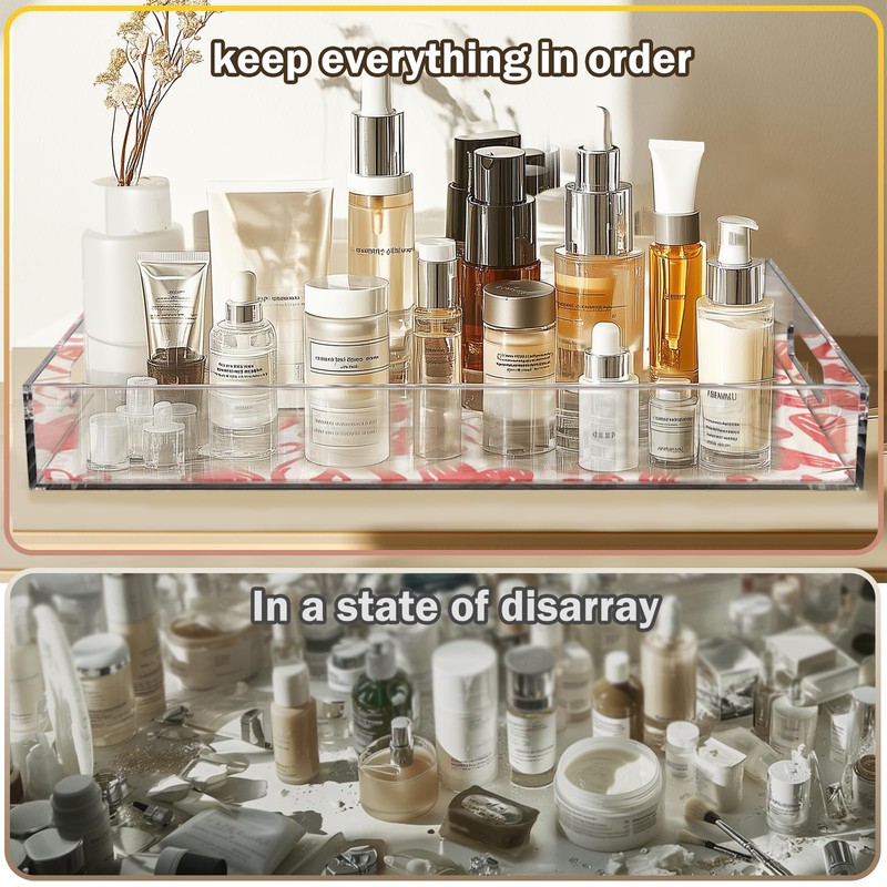 Qdetak Acrylic Tray 16"x12" – Decorative Serving Tray with Handles & Interchangeable Inserts, for Breakfast, Makeup, Bathroom Vanity, Ottoman | Gift for Couples & Home Decor