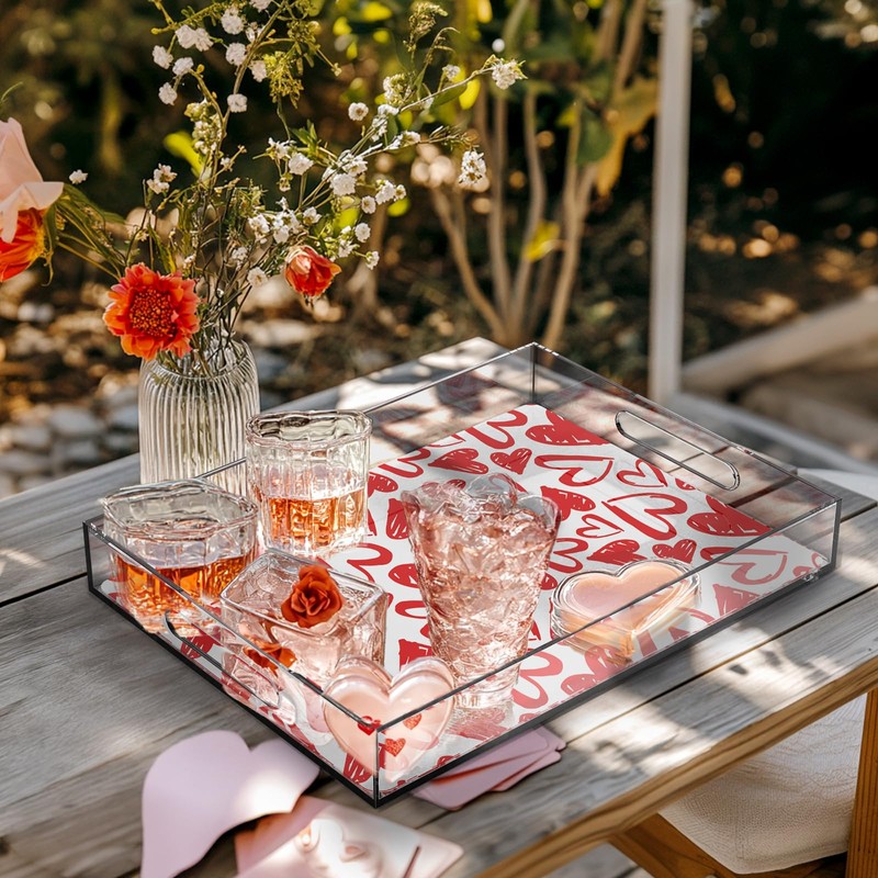 - Large Acrylic Serving Tray for Everyday Use – Crafted from durable clear acrylic, this 16"x12" tray is perfect for serving breakfast, drinks, or snacks while protecting your surfaces. Its raised edges help prevent spills, making it ideal for both casual meals and entertaining guests