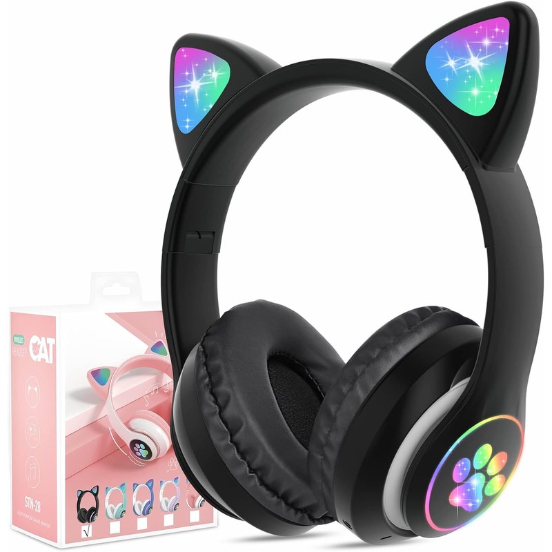 QearFunXD Cat Ear Bluetooth Headphones, Children's Headphones, For Kids, Adults, Cute, Wired and Wireless, Nekomi LED Light, Foldable, Built-in Microphone, Adjustable Size, Cute,