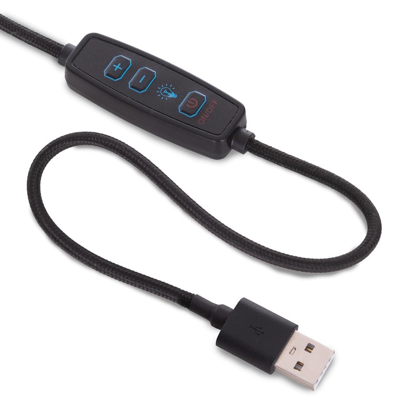 The USB A male connector fits most power sources, such as power banks. The power bank is not included.