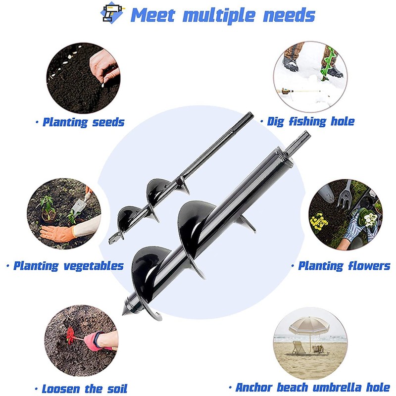 - 🌲【multiple usage 】: Drill auger bit for planting,garden spiral hole drill planter, Root remover tool Weeder, Lawn Auger Spiral Drill Bit root remover tool,weed puller tool stand up. Great Item for dramatically increasing efficiency when planting bulbs,potted plants, vegetables, flowers, bare root trees and shrubs.