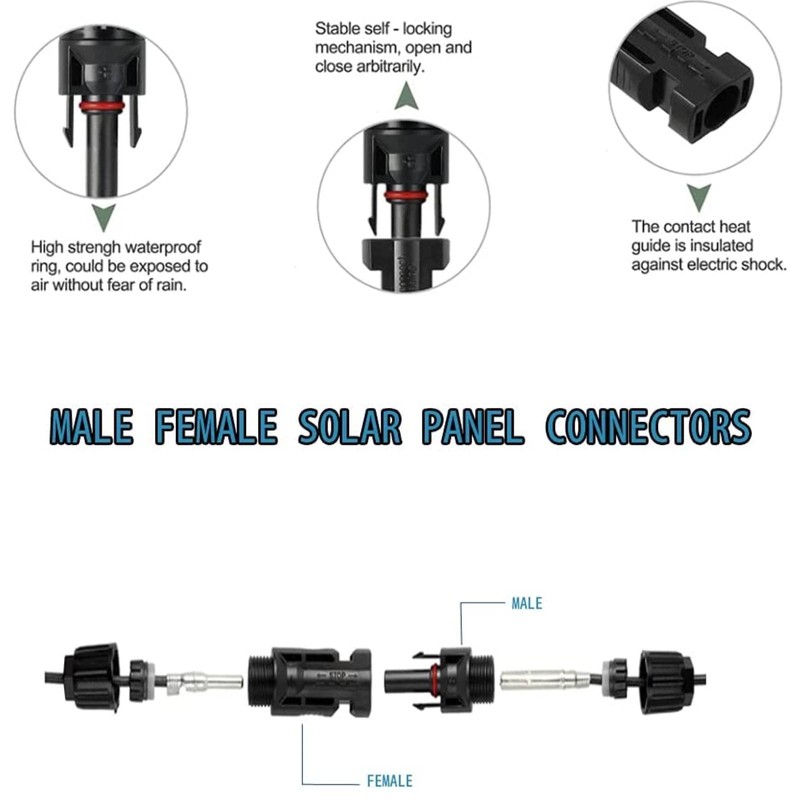 - 💕【Easy to Install】solar connectors kit is quick & simple assembly processing, and simple removal of plugs without the aid of any extra instrument. Solar conductor made of pure copper with tin coating, low resistance that can prevent corrosion and oxidation, durable with a lifespan of more than 25 years for outdoor use.