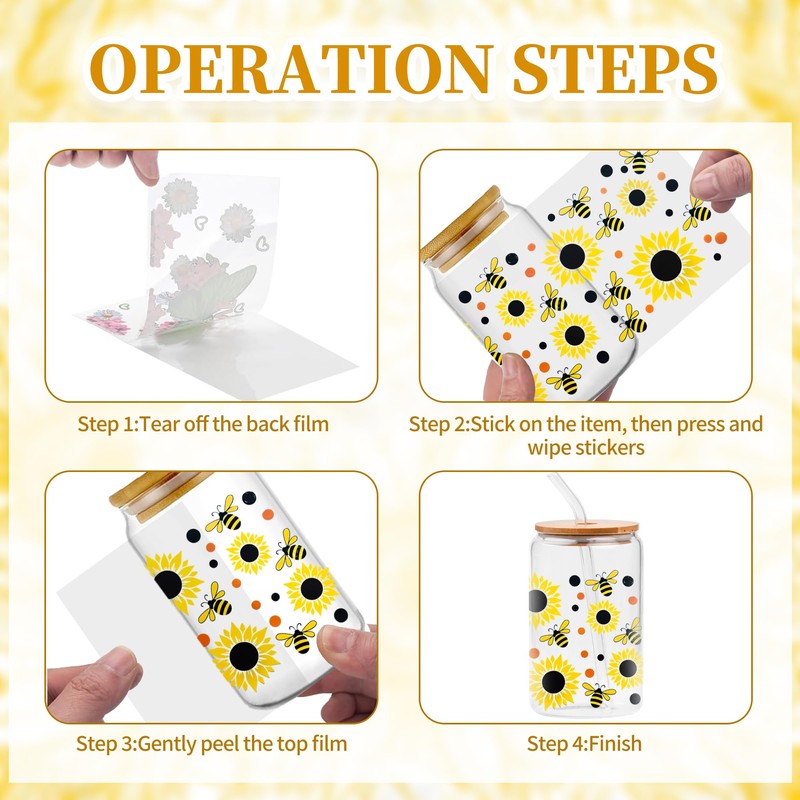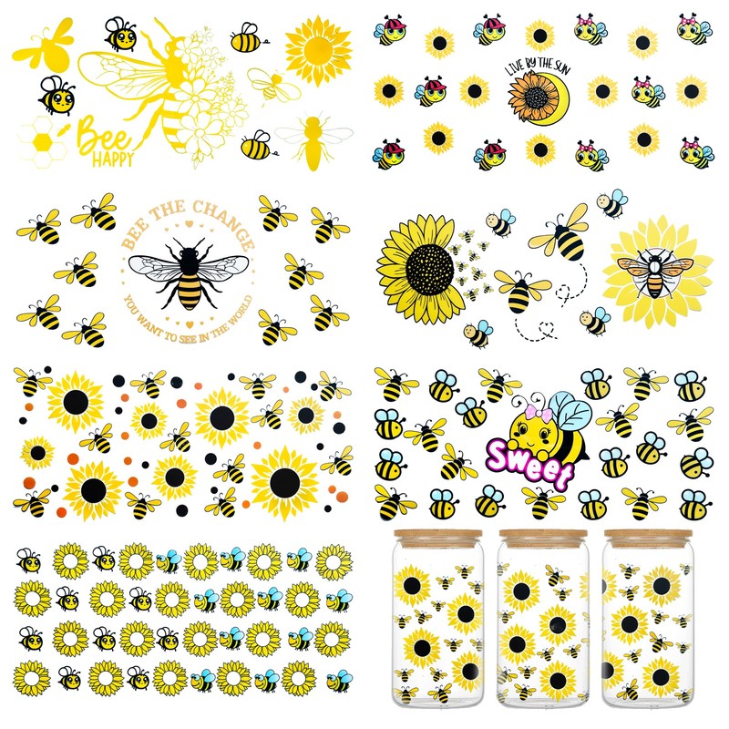 Qehese UV DTF Cup Wrap - 8 Sheets Bee UV DTF Cup Transfer Stickers Honeycomb Design Kitchen Containers with Locking Lids, Waterproof & Odor-Proof for Dry Food (8-Pack)
