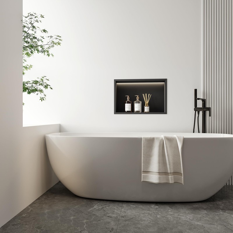 • 【Mordern Design & Wide Usage】Shower niche with led light enhances its visual appeal by lighting displayed items. 3000K warm light contributing to a welcoming atmosphere while adding a modern touch to the space. It combines the practicality of a shower niche with the beauty and functionality of lighting. A perfect open storage space for bathrooms, kitchen, bedroom coffee bar etc.