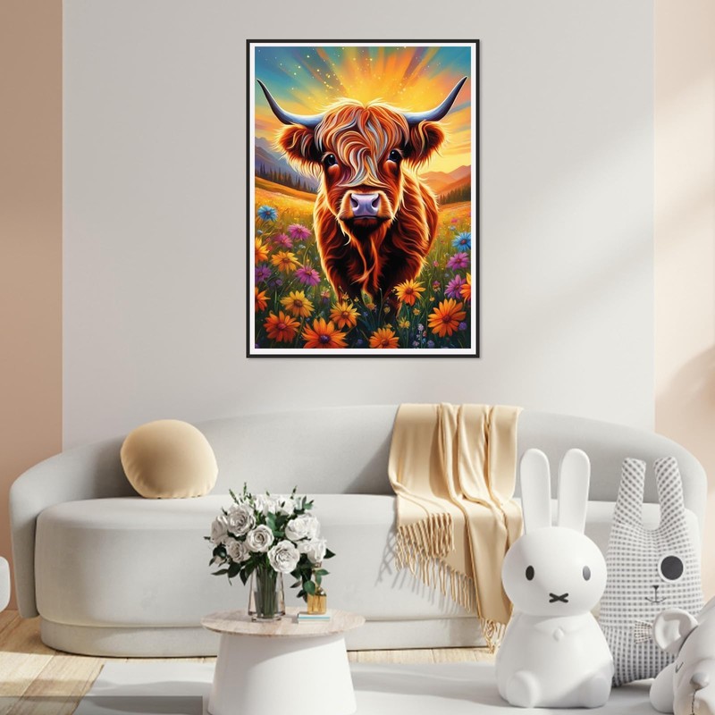 QENSPE Diamond Art Kits Adults Highland Cow Diamond Painting Kit Complete, DIY Full Drill Diamond Painting Animal Set Beginners Crystal Rhinestones Embroidery Kit Home Wall Decor 30x40cm