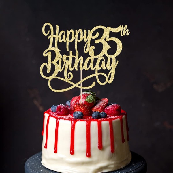 Qertesl - Decoración para tartas de cumpleaños 35 con purpurina dorada para 35 años, decoración para tartas de 35 años, para hombres y mujeres de 35 años